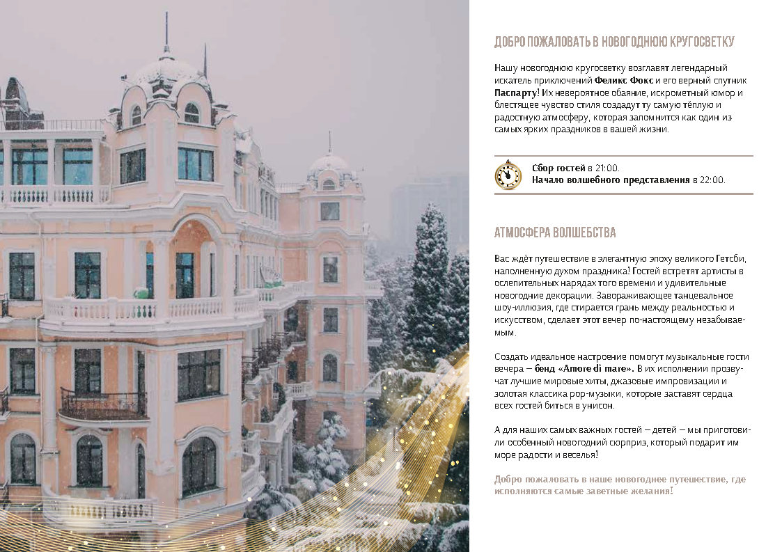 Отель «Вилла Елена» 5* приглашает Вас окунуться в настоящую новогоднюю кругосветку, которая стартует с берегов Тавриды. Мы создали особенный мир, где невозможное становится возможным!